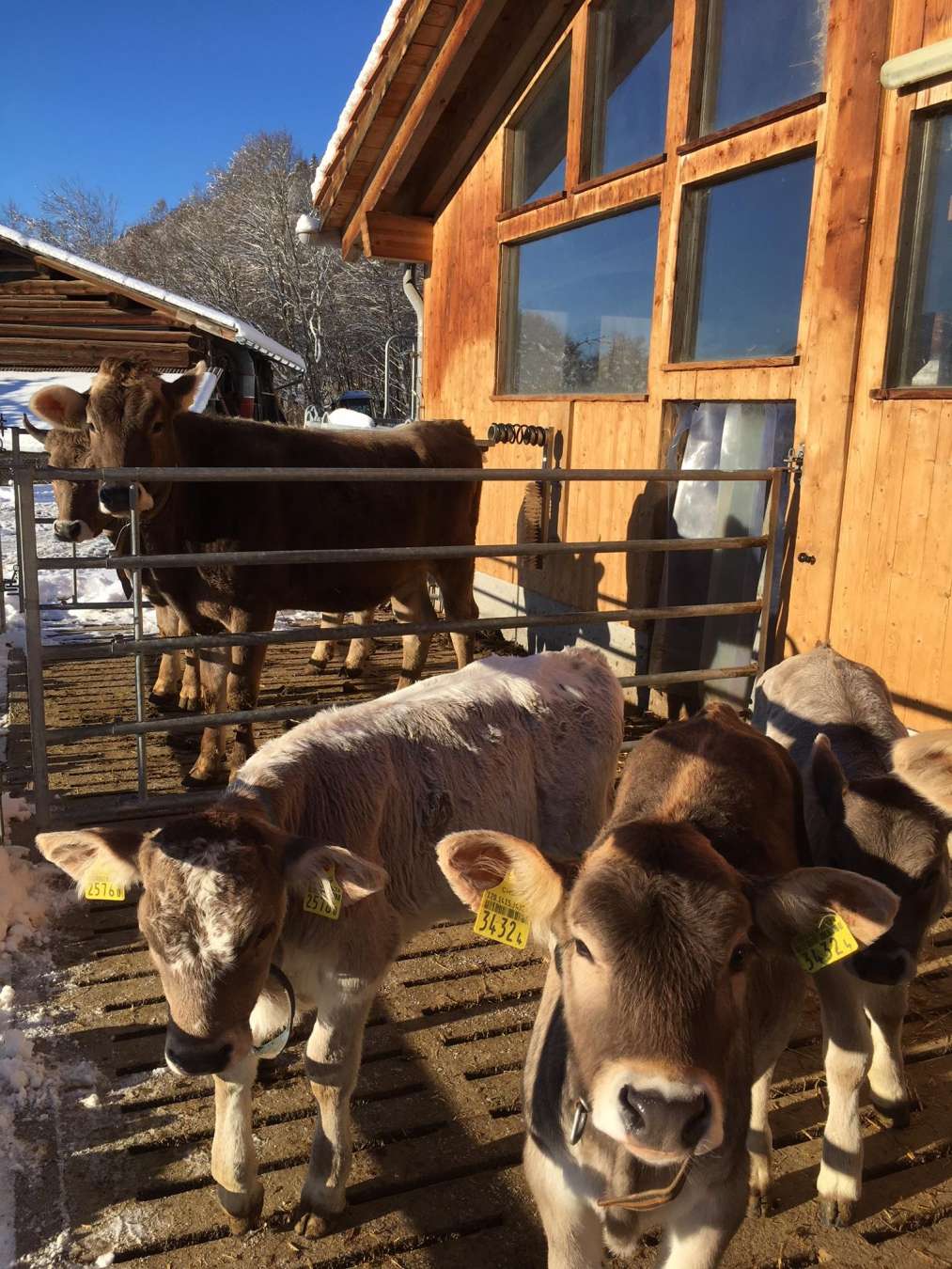 Auf unserem Betrieb wird Milchwirtschaft und Aufzucht betrieben. Im Stall stehen momentan 13 Milchkühe, und zur Aufzucht 12 Kuhkälber, 12 Mesen und 12 Rinder. Dazu kommen ca. jedes Jahr 30 „Bündner Puurachalb“ Mastkälber, verteilt über die Wintermonate. Im Sommer ist der grösste Teil unserer Tiere auf der Alp, nur 1-2 Kühe und 2-4 Kälber, dürfen den Sommer zuhause verbringen.